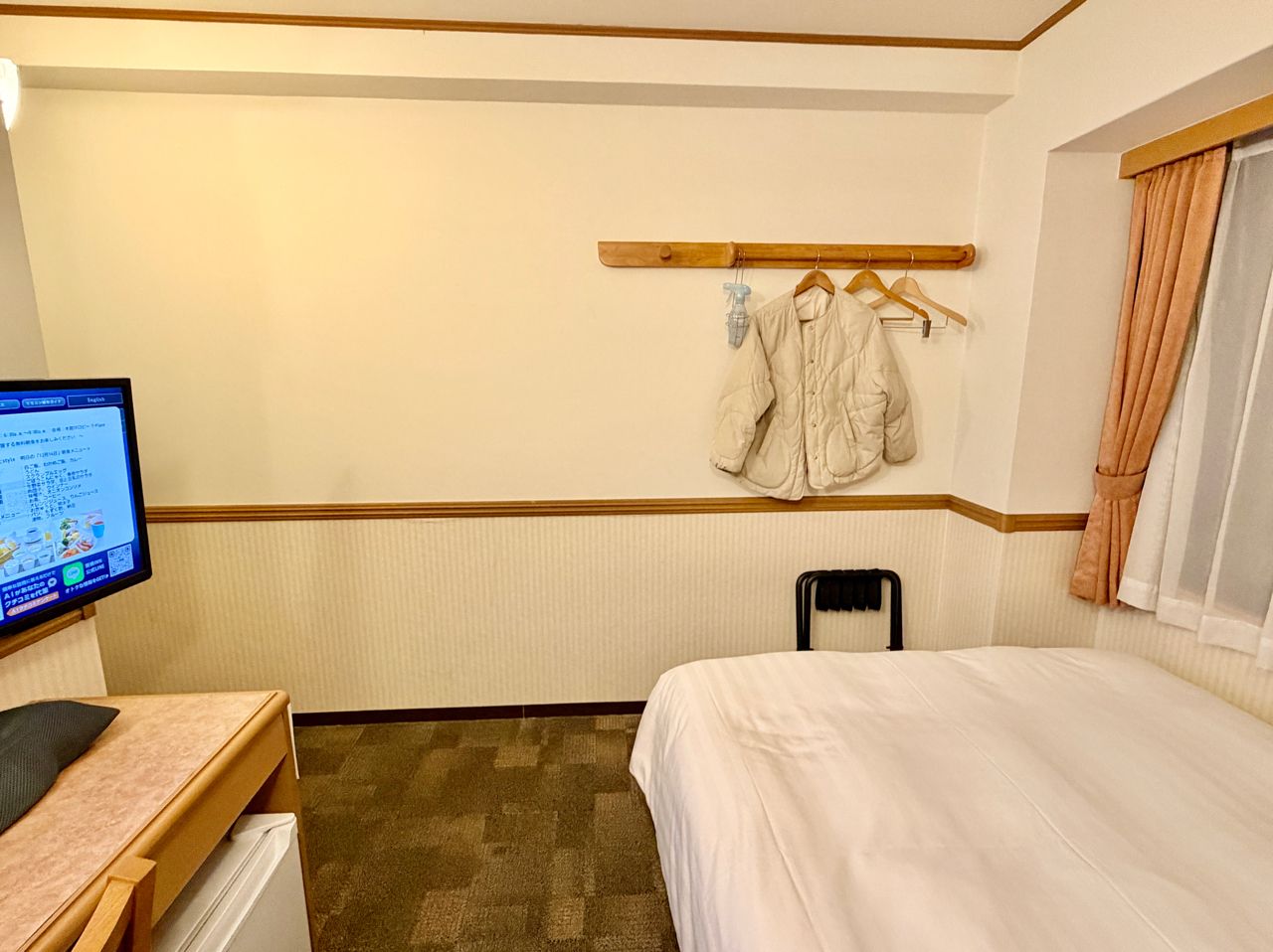 這次訂的是單人房,對一個人入住來說我覺得是溫馨又不侷促的大小,地板空間開啟29吋