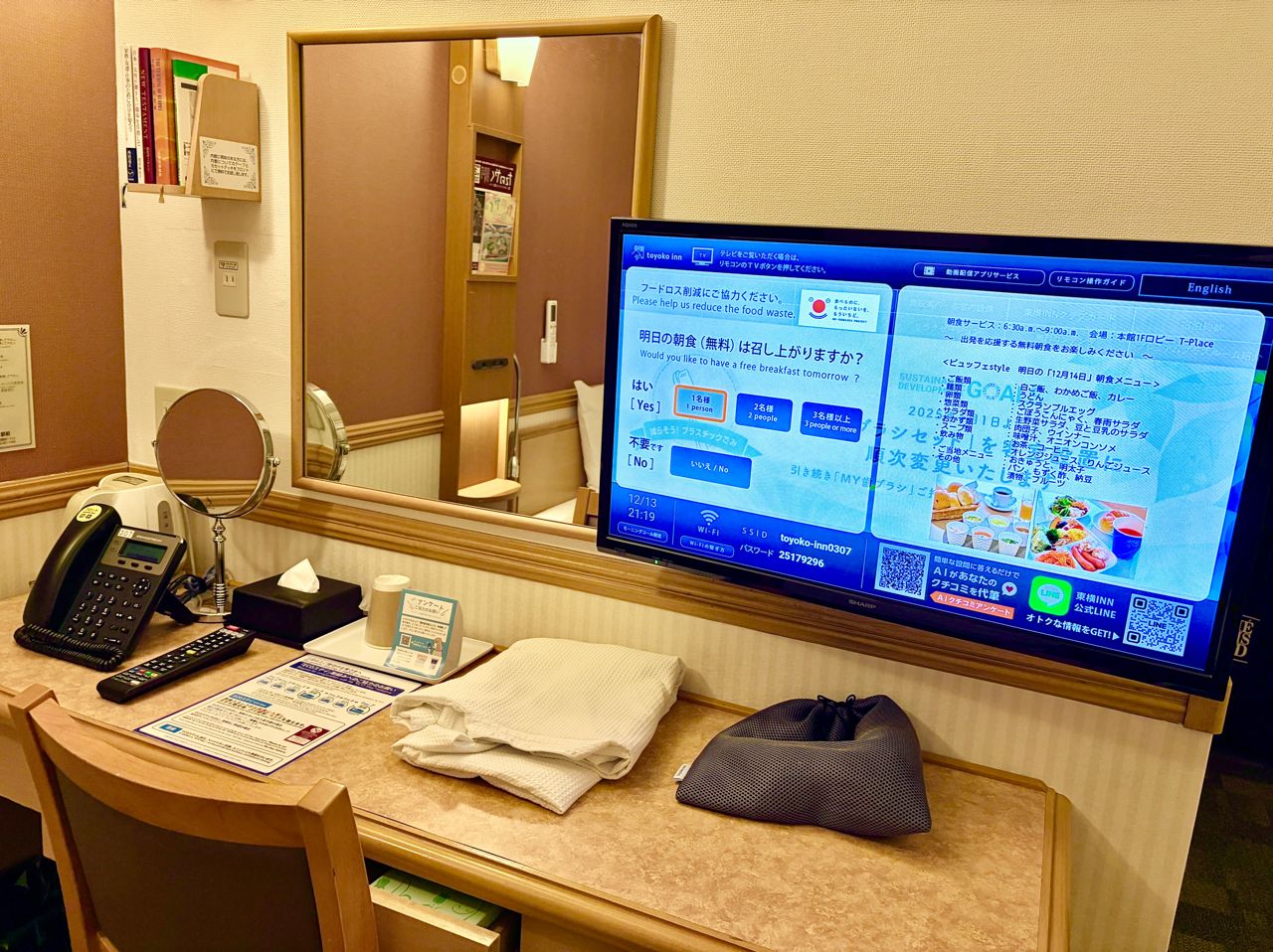 一應俱全的標準化設備,幾乎每一間東橫inn都有著一致性相似的熟悉感,電視上標示著