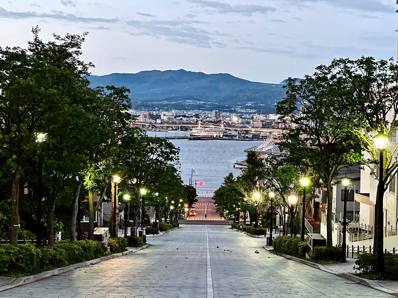 八幡坂一帶夜間散步欣賞舊建築很愜意;