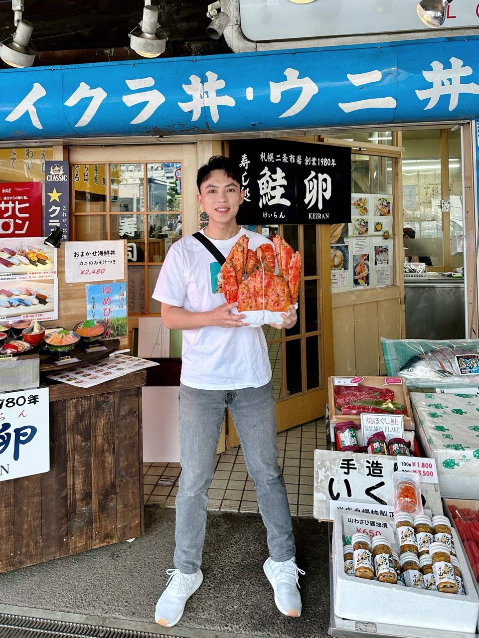當然還有跟天氣一樣熱情的海道民眾們,例如二条市場海鮮店的老闆主動幫拍偽宣傳照(?