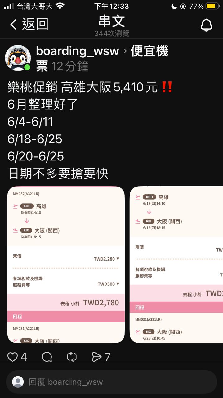 Re: [資訊] 樂桃國際線優惠活動(日本出發)