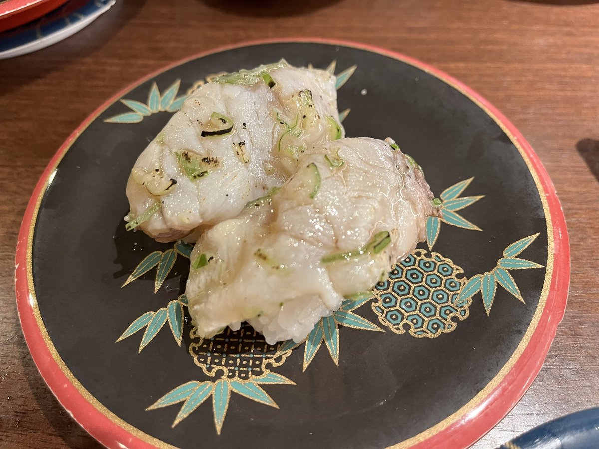 搭配蔥鹽又有炙燒香的河豚壽司了!