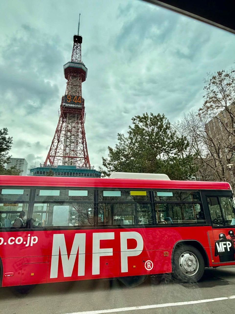 買完後經過札幌電視塔剛好巴士經過拍下這張照