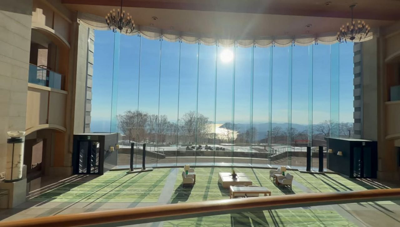 Check in 時候櫃檯旁前大廳的洞爺湖景(這是跑去二樓往下拍的角度)