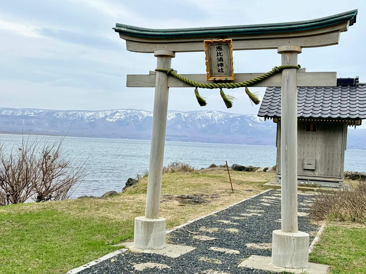 吃完早餐一路往小樽走,走海邊時候看到一個不知名的小神社有海景、雪山景停下來休息