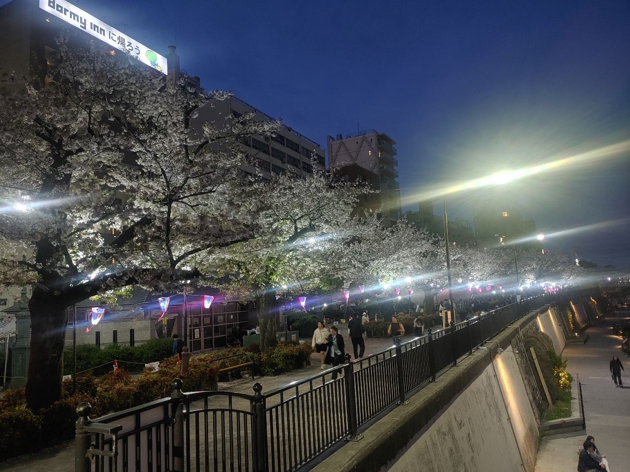 ,到目的地後已經六點多,夜櫻打燈很美,但我不會拍照。