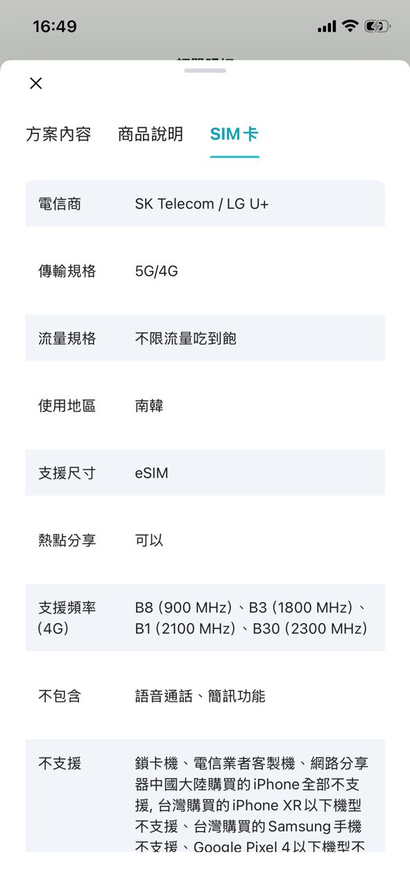 方案:韓國eSIM 無限流量