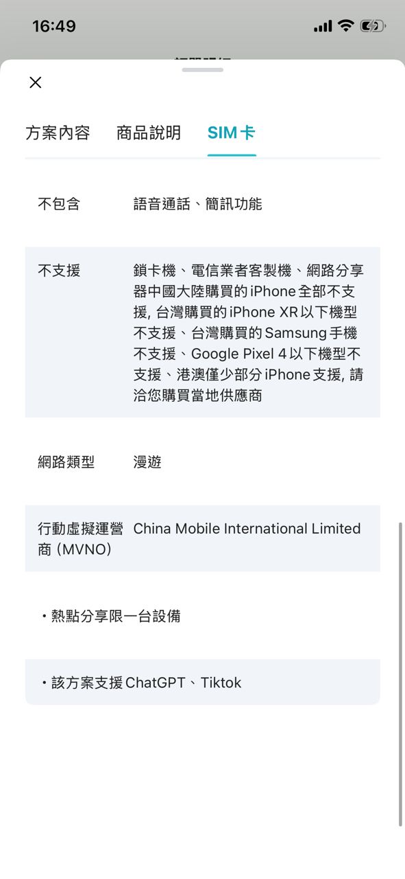 請自行確認手機有支援ESIM功能且非中港澳出廠型號