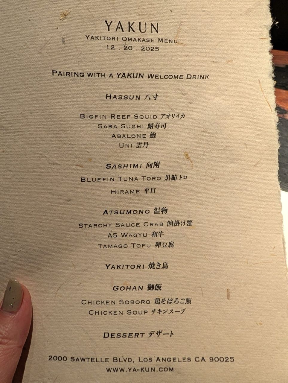 LA精緻的fine dinning,新開幕的雅昆:YAKUN omakase ,地址在2000 Sawtelle Blvd,
