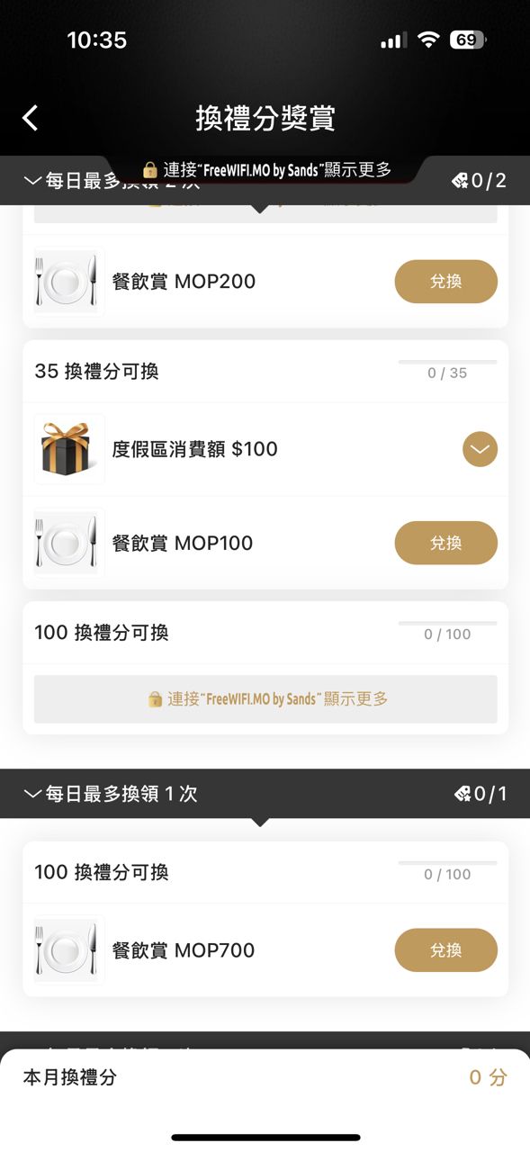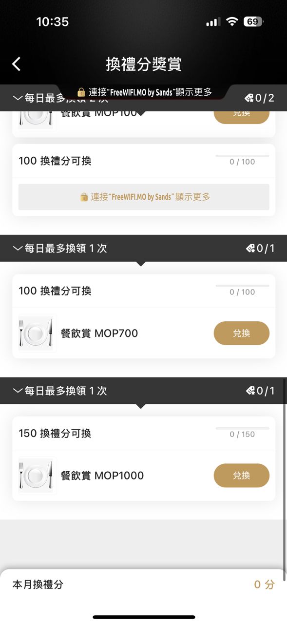 但上次在威尼斯打,覺得積分好像換不到什麼。印象中35積分換個100元餐券而已,有點