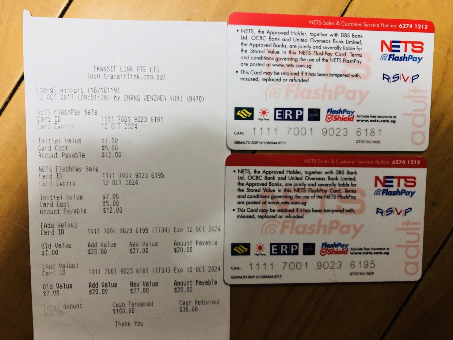 1. NETS交通卡 * 2張 (兩張餘額皆為14.84)