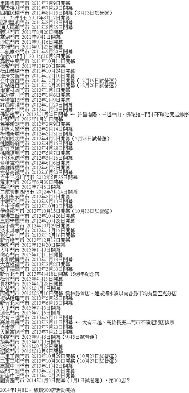 : 3.其他資料想到再補,板友們若認為某些門市具有特定意義的,也請推文補充喔!