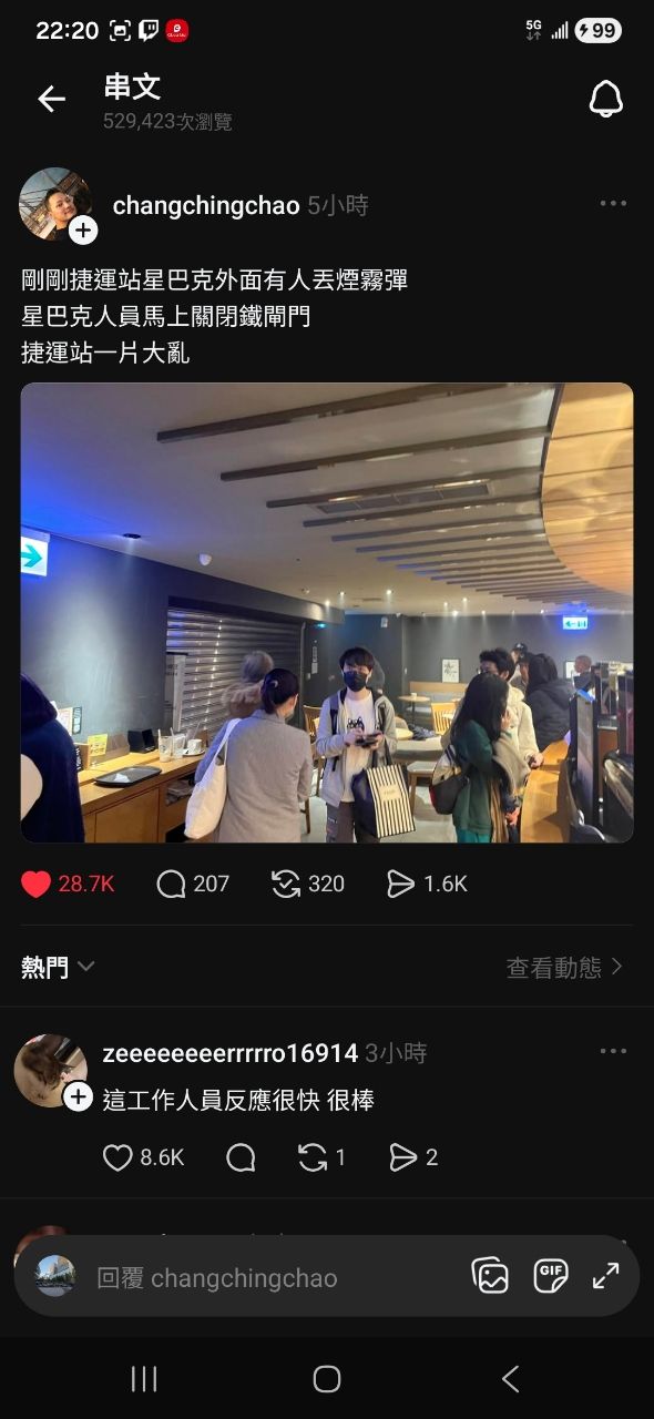 Threads上有當時在台北車站板南線B1(案發現場)台北捷運門市內的鄉民Po照片