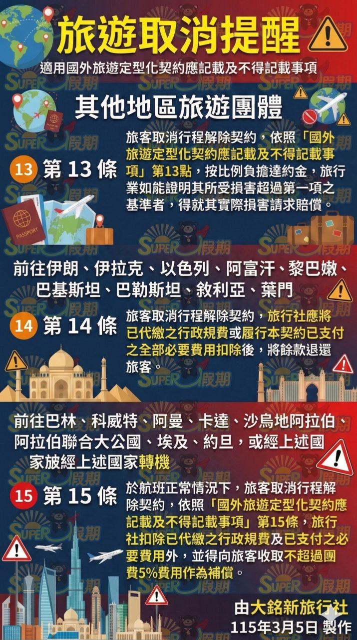 三、 前往以下地區(或經由其轉機):適用定型化契約 第 15 條