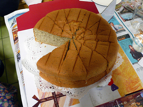 那時候還沒有購入戚風模(默),所以外型就是這副海綿蛋糕樣~