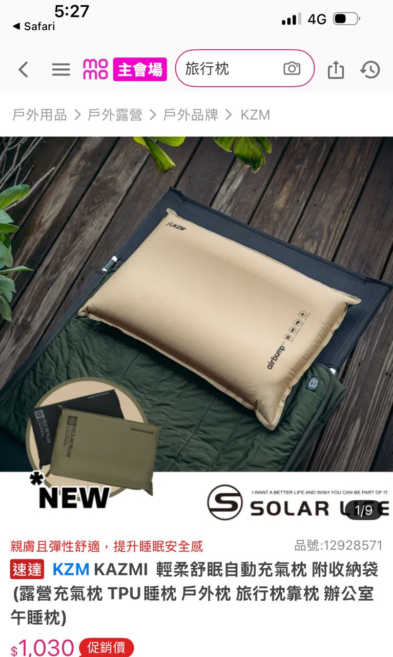 7. 輕柔舒眠自動充氣枕 附收納袋