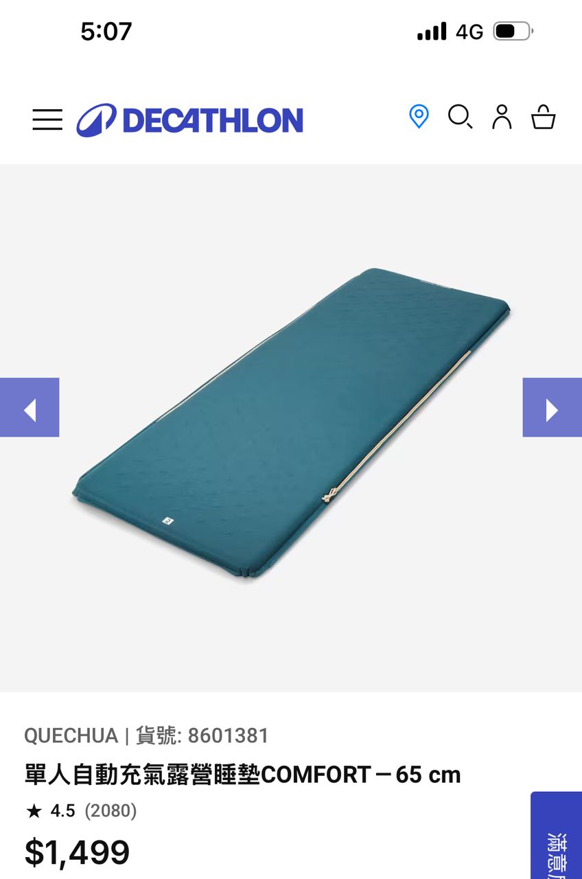3. 迪卡儂 單人自動充氣露營睡墊(3張)
