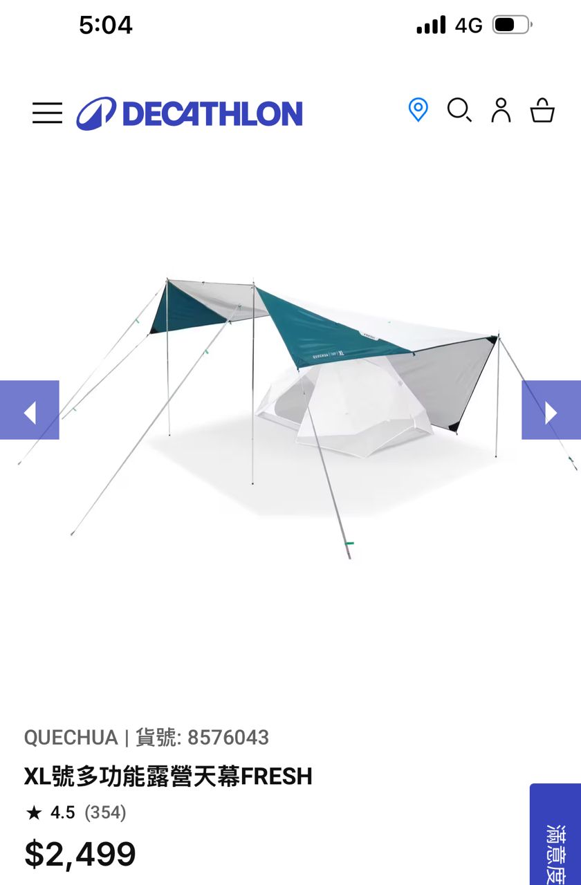 2. 迪卡儂 XL號多功能露營天幕FRESH