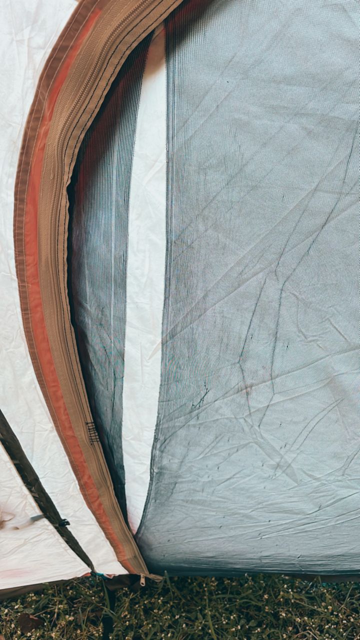 左側紗網有脫線,正面紗網有燒破一個洞有修補且不影響使用,雪裙有被煙燙破一個洞,