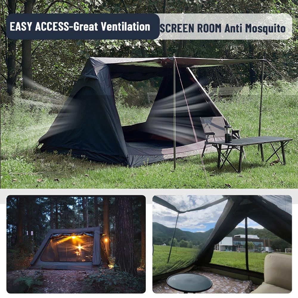 內帳外帳兩用: 內帳紗網透氣涼爽,外帳TPU窗可擋風觀景,另外還有附兩邊三角門的TP