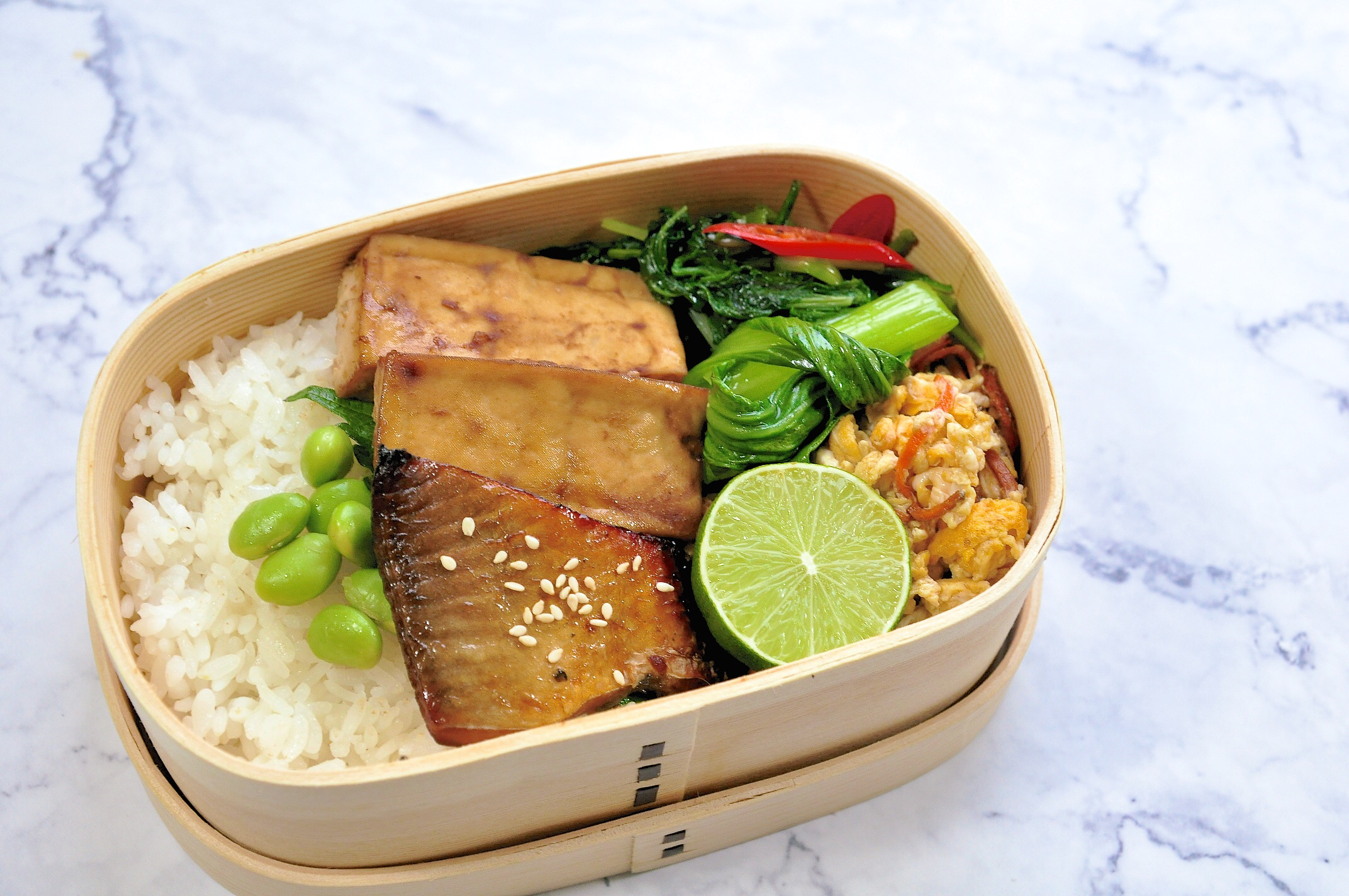 烤魚肚、烤味噌豆腐、青江菜、紅蘿蔔炒蛋、青豆