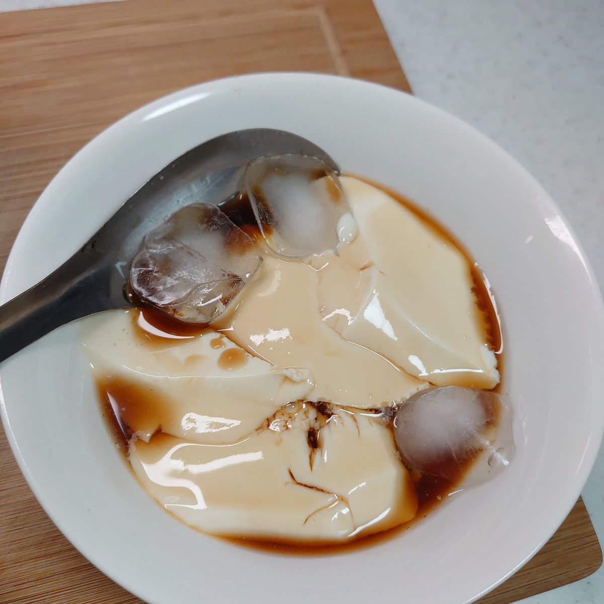 : 蓋好放進冰箱放個幾小時,整個豆花已經是無出水,相當於布丁的硬度了。