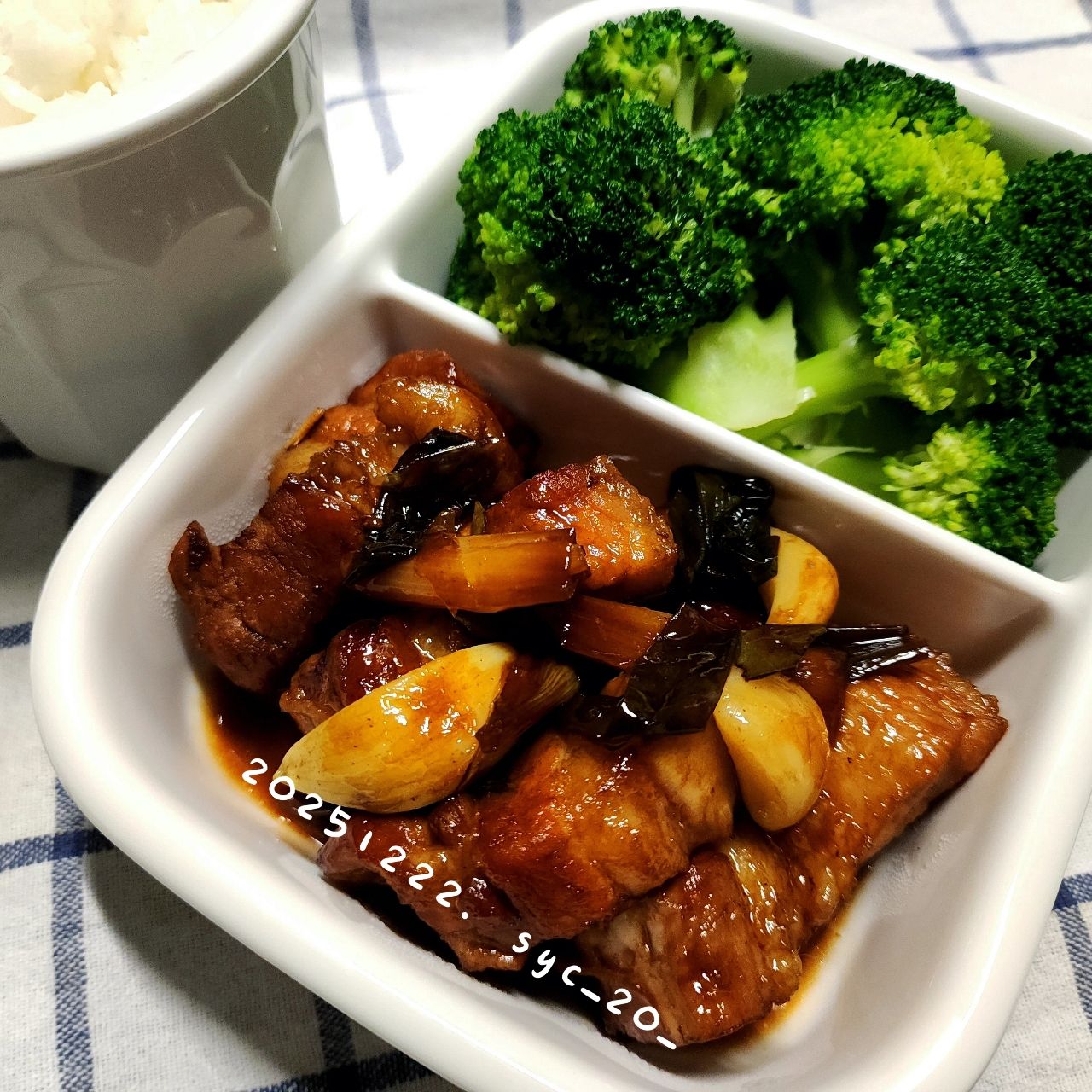 蔥油拌麵/川燙青花菜/乾煎豬五花佐香料鹽