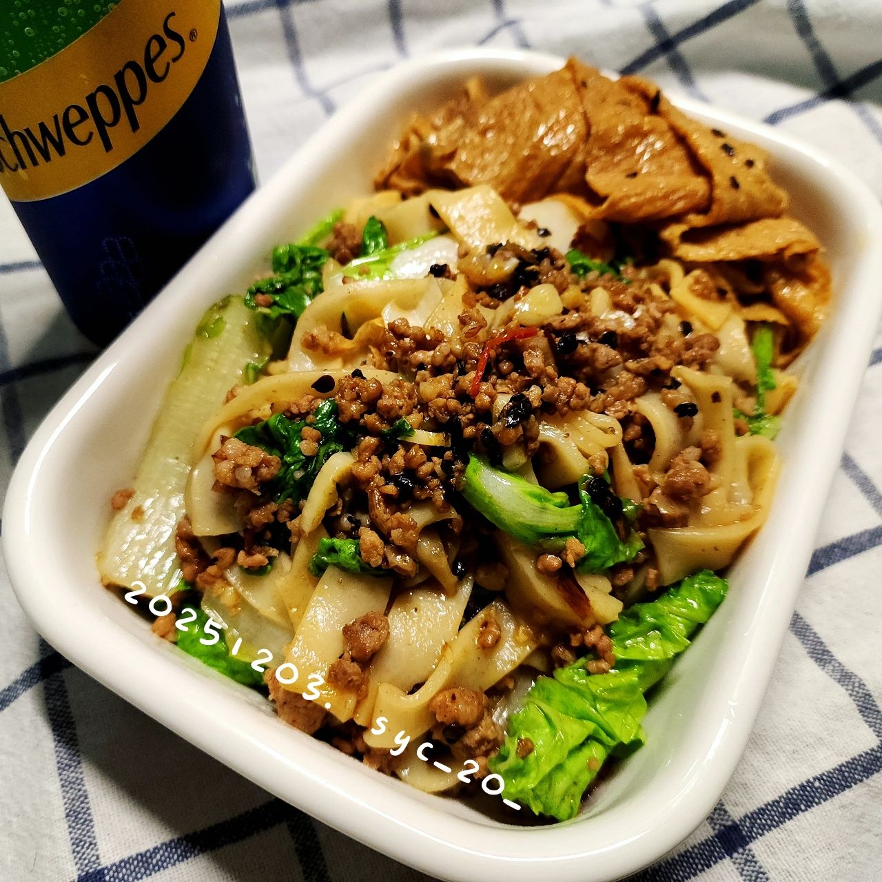 辣炒酸白菜杏鮑菇刀削麵/乾煎鱸魚佐香料鹽