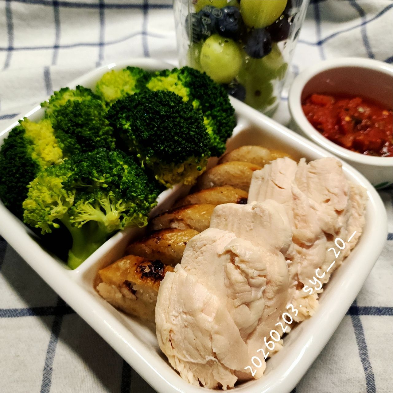 川燙青花菜/雞胸肉/煎糯米腸