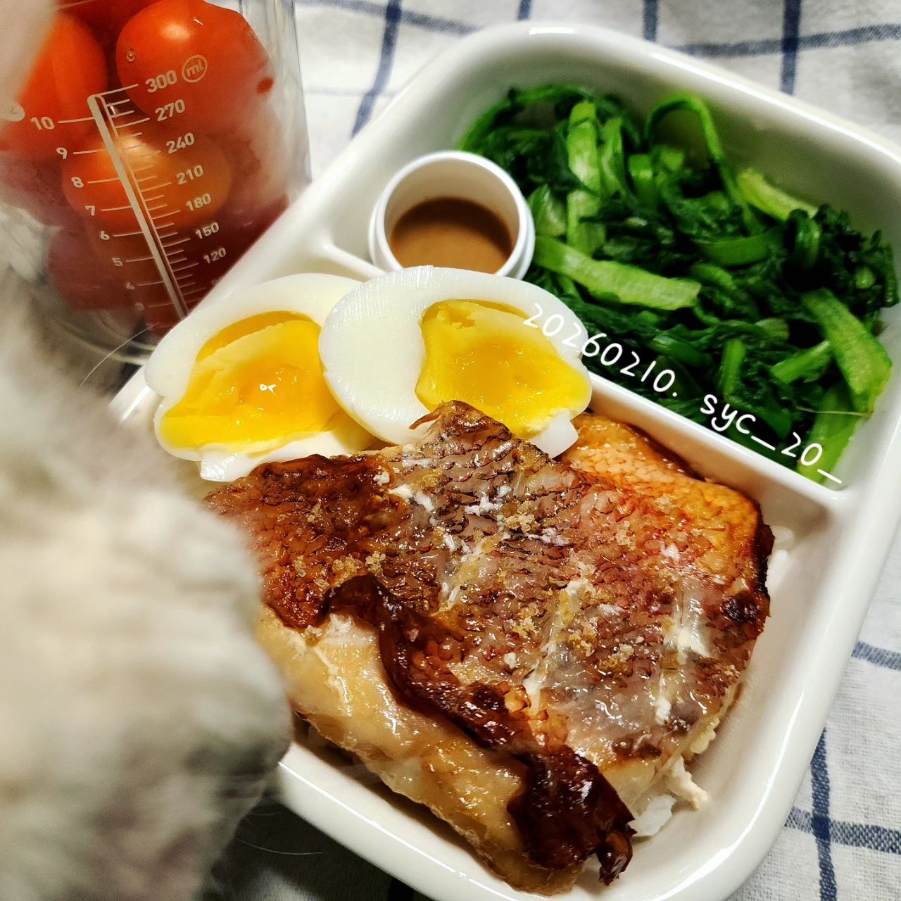 煎紅魚排/水煮蛋/川燙茼蒿佐胡麻醬