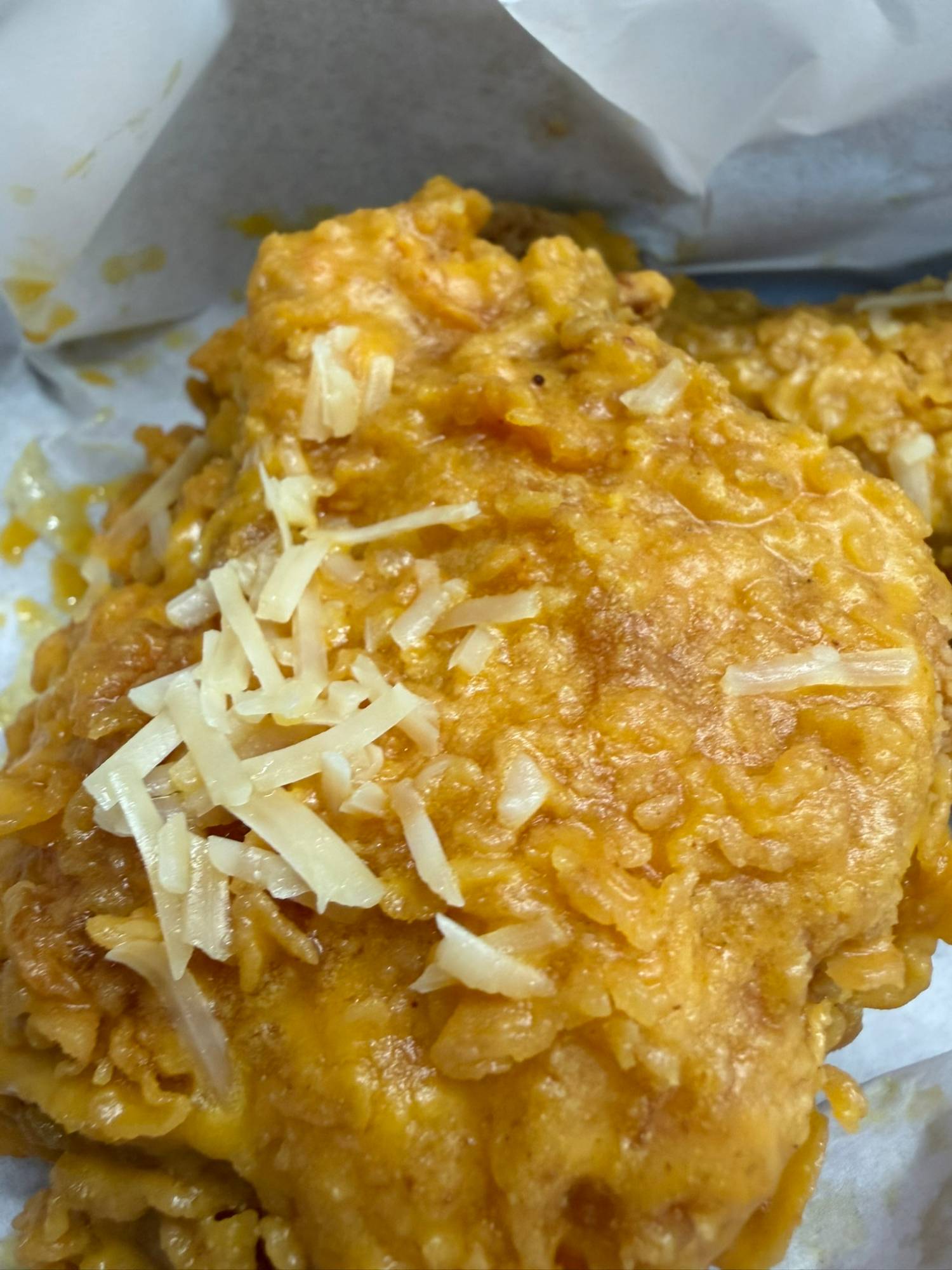富貴金沙起司脆雞:咔啦脆雞、金沙醬、帕瑪森乾酪絲
