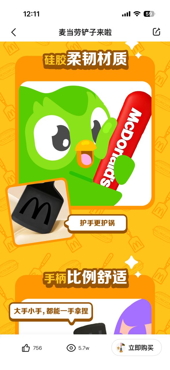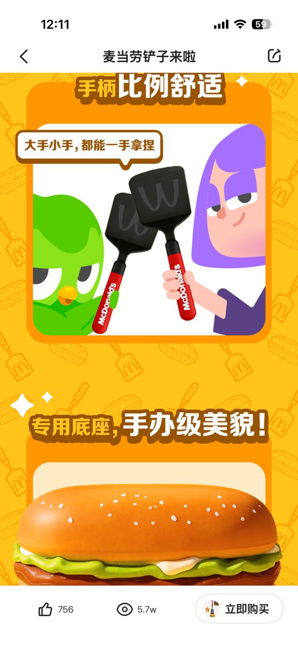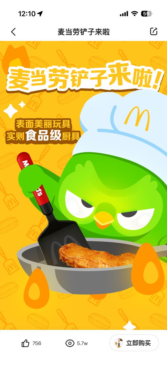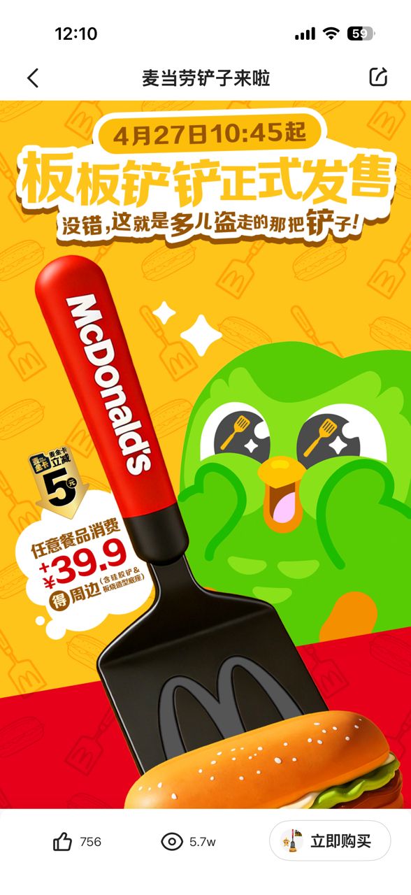是任意消費加39.9rmb,就送食品級麥當勞鏟子和最