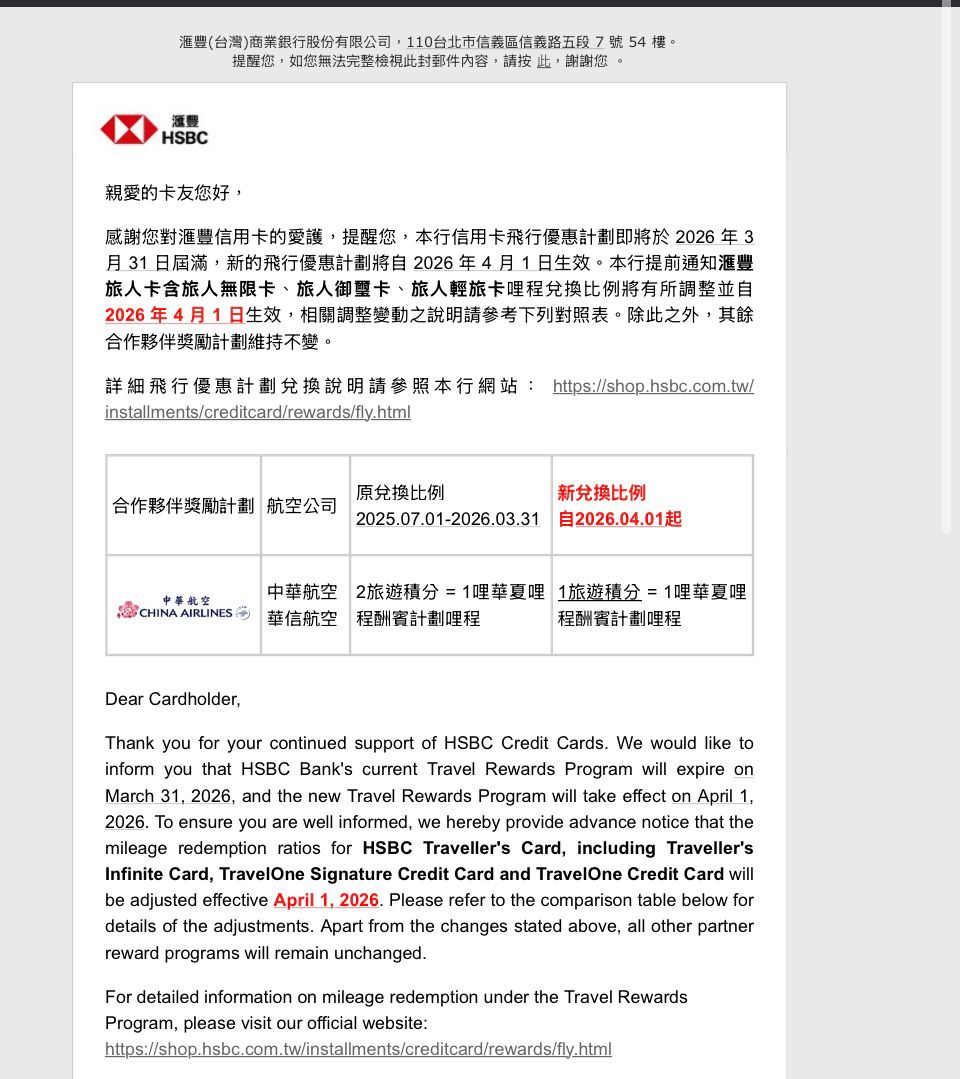 旅遊積分換華航里程調成回1:1啦! 不知道對價格會有什麼影響,不過對於喜歡搭華航的應該是好消息