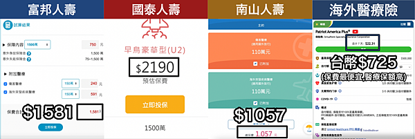 我自己習慣是買前面四間保險,所以下面會以這四間做比較