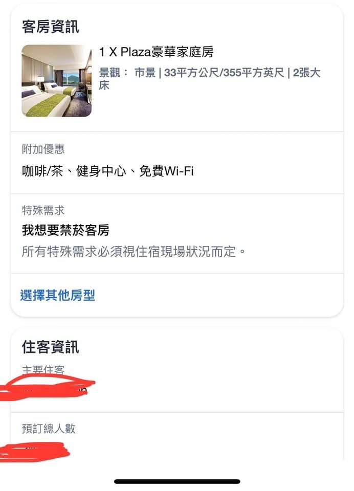 因工作行程變動無法前往香港,忍痛轉讓已預訂的優質家庭房。這間飯店位於旺角東站上