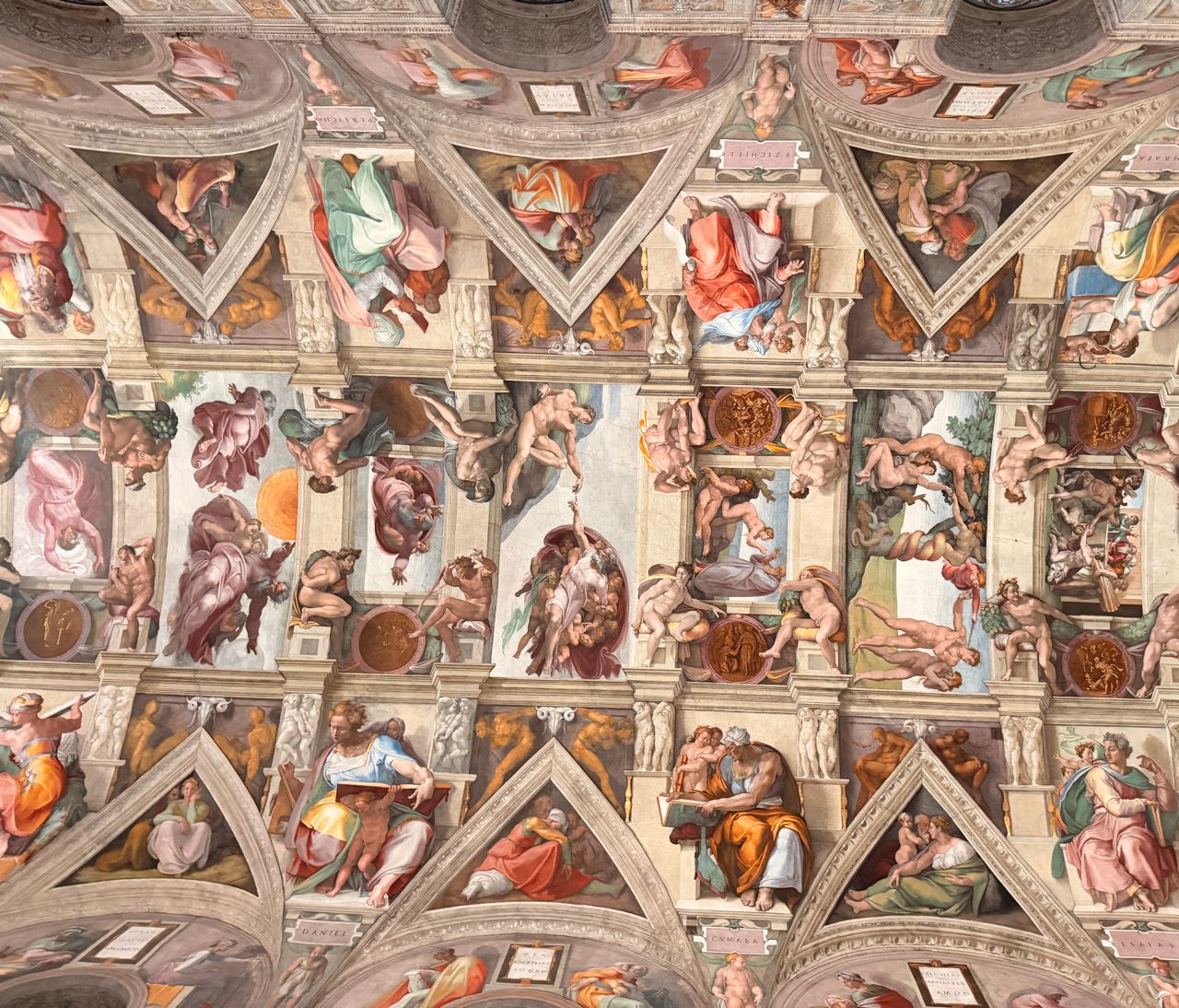 汀禮拜堂和聖彼得教堂。我最印象深刻的是創世紀這一幅畫,整幅畫在天花板上,很震撼