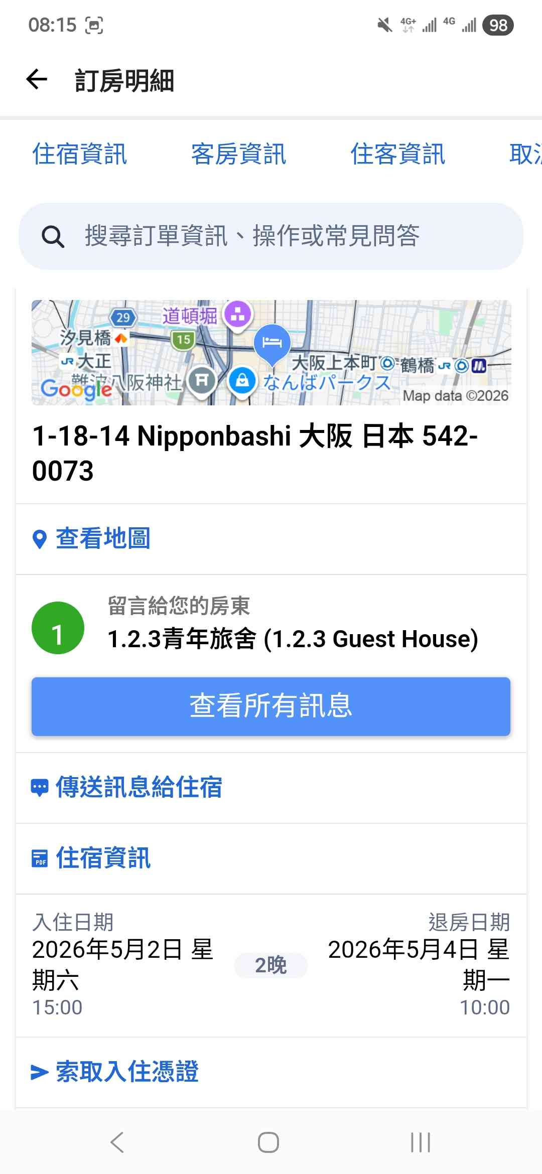 [交易] 轉讓5/2~5/4大阪住宿